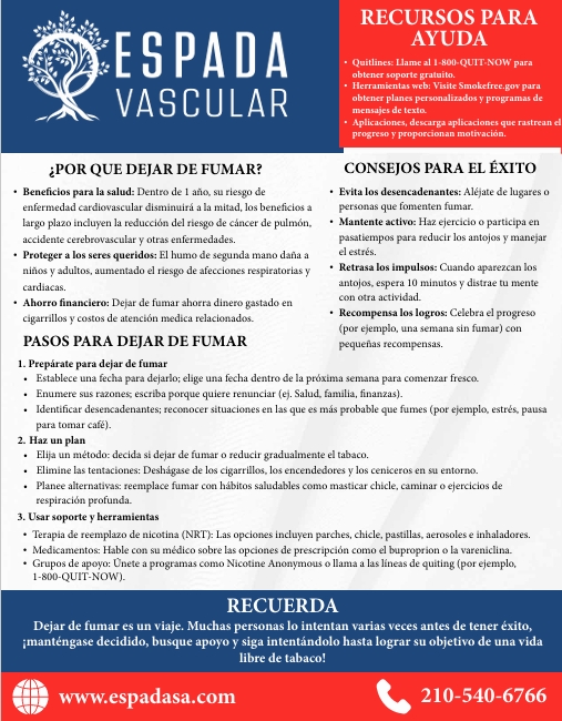 Welcome to the resources section of Espada Vascular, the leading authority on vascular health and Peripheral Artery Disease (PAD), founded by Dr. Martinez. Explore a variety of materials designed to support your journey toward better vascular health and overall well-being. Click on the image below to download the PDFs